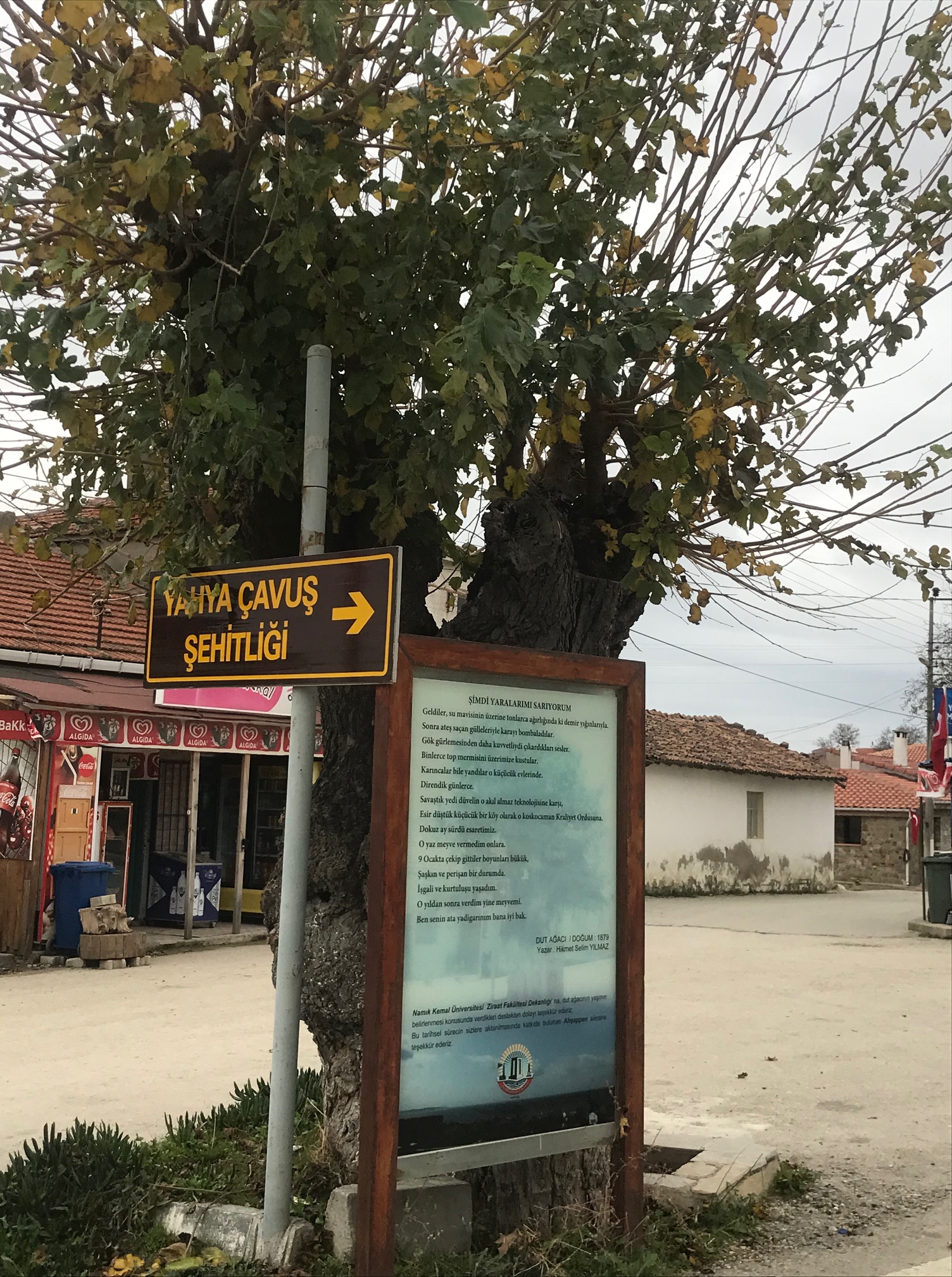 A weathered sign stood before it, bearing a poignant poem by poet Hikmet Selim Yılmaz — a haunting echo of the past that still whispers into the present: